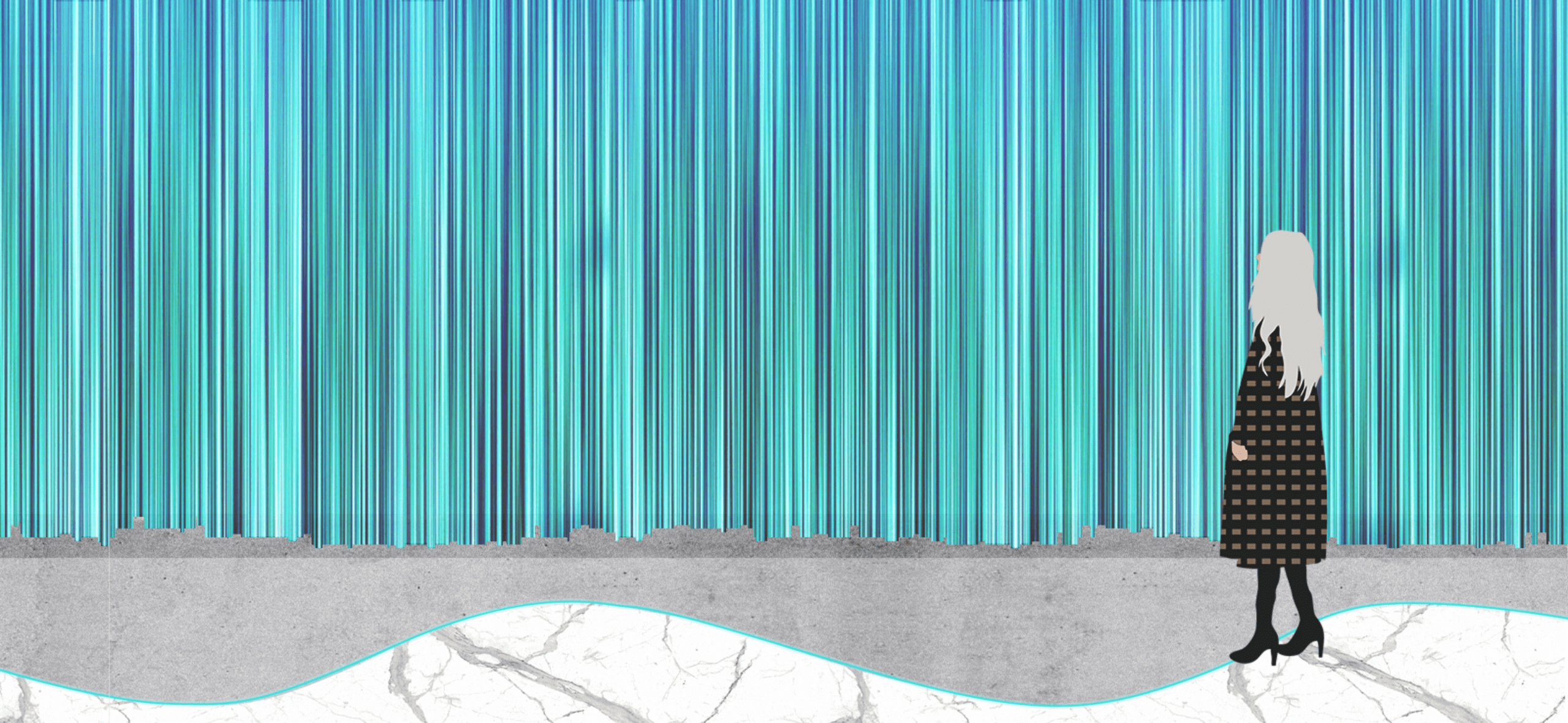 из стекла как ретроспектива проблем таяния ледников. Густые пряди голубых
